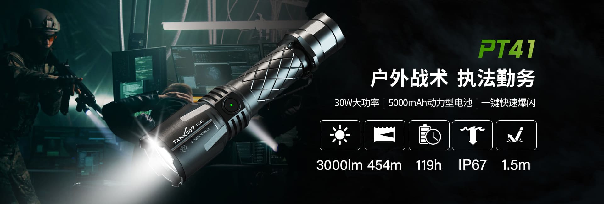PTL01是一款性能優(yōu)異的白激光戰(zhàn)術手電,采用多重鍍膜鏡片,輸出激光光譜更平滑,降低單色激光,1400米的最遠射程,平行光柱猶如光劍能刺穿黑暗,直至天穹,可搭配槍夾使用,適用于強光壓制制爆、遠處追蹤、..